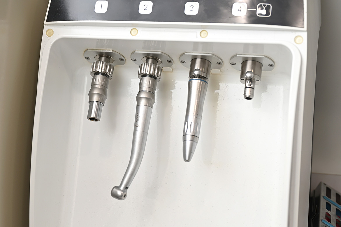 新津田沼歯科クリニック奏の杜では、ハンドピース専用の滅菌器を導入し、滅菌済みのハンドピースを20本以上常備し、患者様毎に使い分けて使用しています。