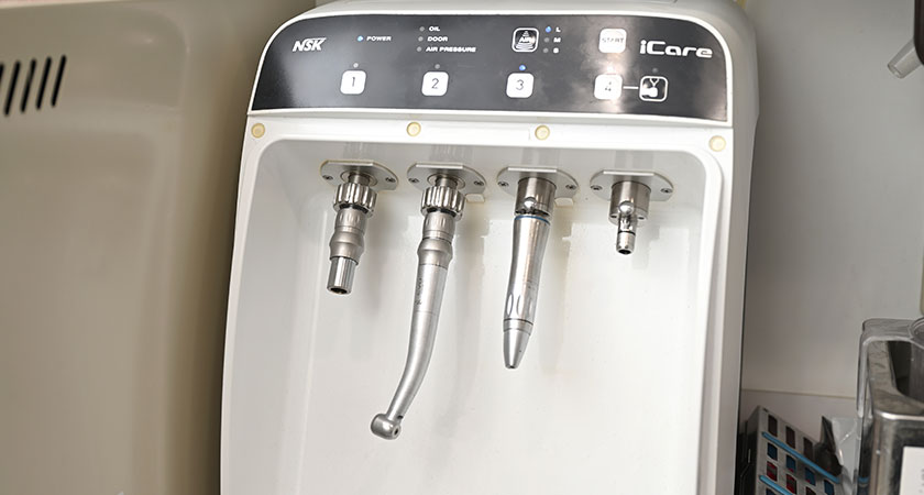 新津田沼歯科クリニック奏の杜では、ハンドピース専用の滅菌器を導入し、滅菌済みのハンドピースを20本以上常備し、患者様毎に使い分けて使用しています。