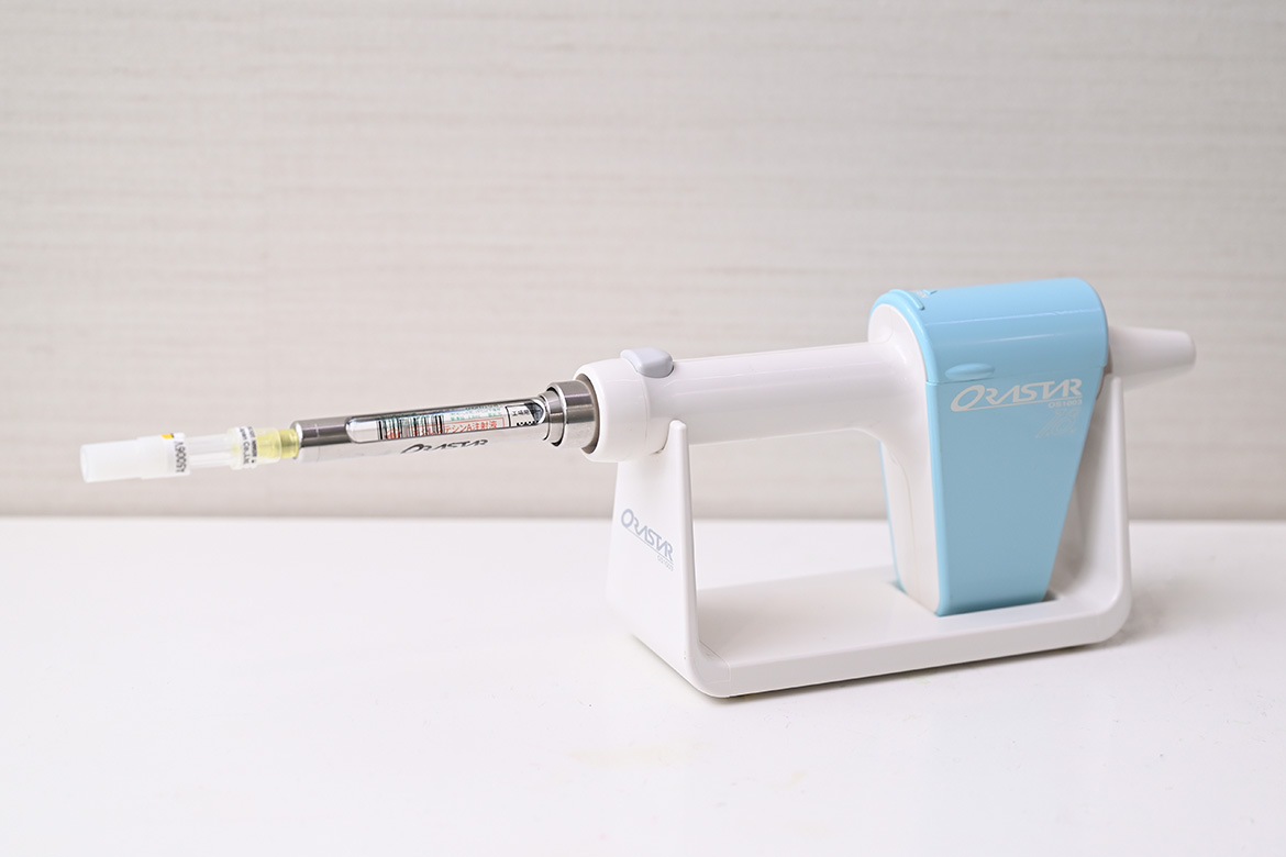 また、麻酔液を注入するスピードを自動化できる電動麻酔器も使用しており、麻酔液注入時の痛みを抑えています。ご希望がございましたらお申し付け下さい。