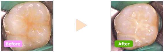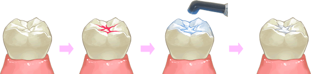 そこで、シーラントと呼ばれる素材でその溝を埋めてしまい、むし歯にならないように処置しておきます。