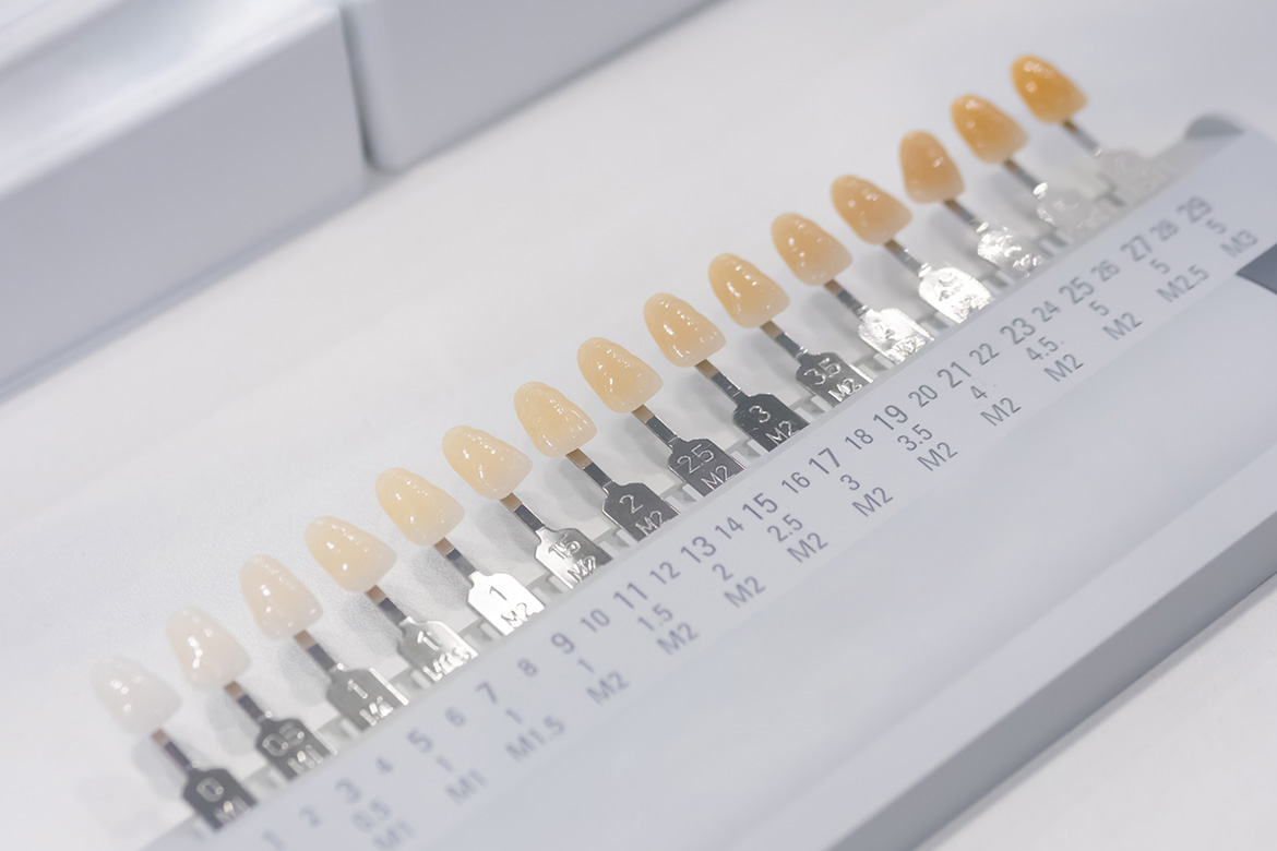 隣在歯等に色調をあわせるため、シェードガイドをもちいて技工士さんに色を合わせてもらい、出来上がる被せ物を自然な色調、形態につくるこができます