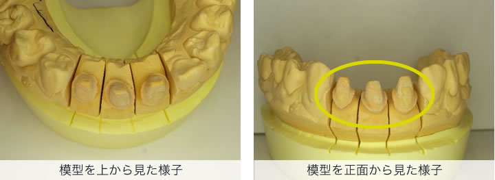 お口の型を取ったあと、患者様には新しく作った仮歯をしてご帰宅いただき、当院では、型に元に模型作りを行います。この模型作りを精密に行うことで、セミラックの歯の適合精度が高まります。