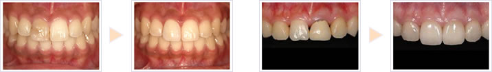 前歯の形を変えたいときなどに、つけ歯を作成し貼り付け、形態を変えることも可能です。これをラミネートベニアと呼びます。