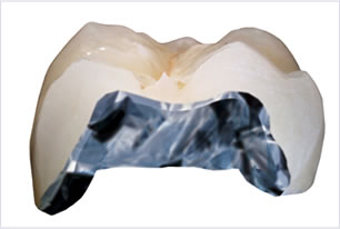 かぶせ物は、歯をほとんど削ってしまった場合に処置します。かぶせ物には大きくわけて2種類あり、金属を使用するものとしないものにわかれます。
