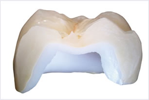 削る範囲を最小限に抑える事ができ型採りなどがなくその日のうちに治療を終える事が可能です。歯の色調に非常に近いため高い審美性も得る事ができます。